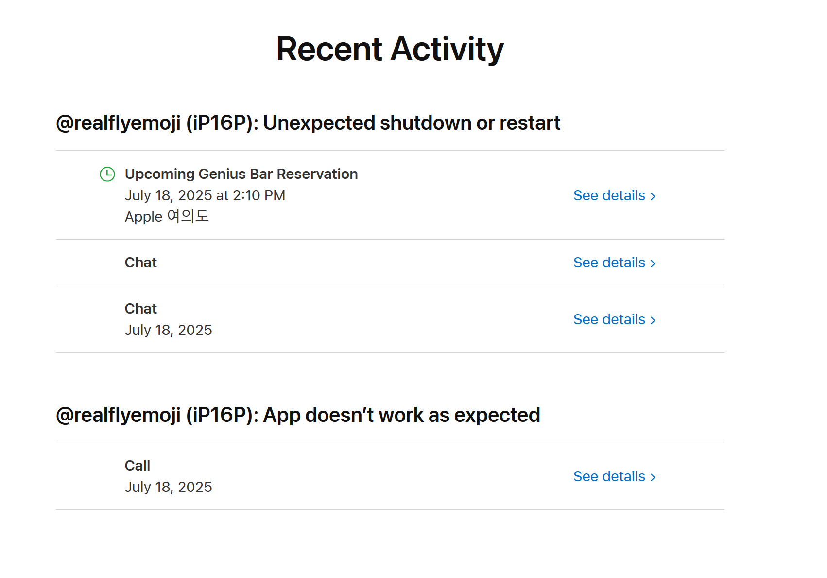 然后问了一下能不能用 AppleCare+ 优先处理 结果跟我说,韩国没有 AppleCare+ 优先处理服务。